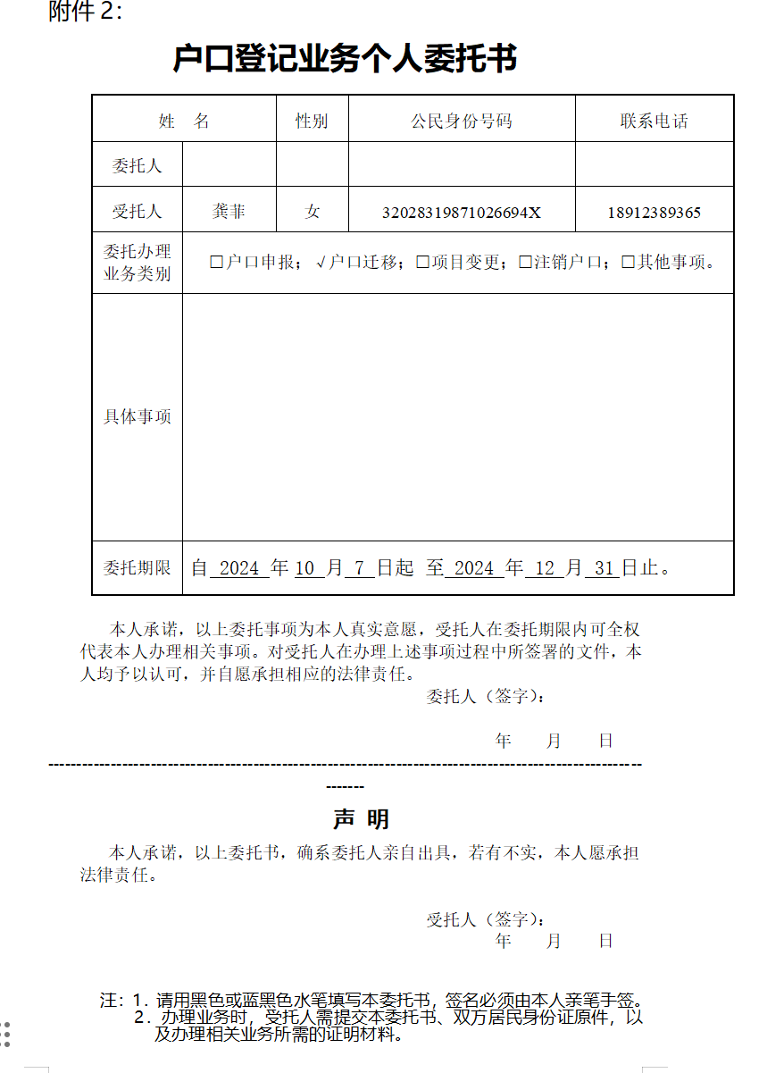 ③《户口登记业务个人委托书》(见附件2)