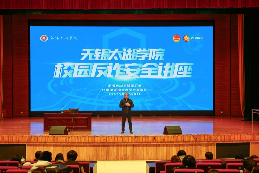 为切实增强我校学生防范意识、构筑校园安全屏障,12月4日,学校保卫处、学工处、校团委联合无锡市公安局,在工科楼报告厅成功举办大学生反诈安全知识教育讲座。讲座特邀江苏省公安厅反诈宣讲团成员,无锡市公安局金牌反诈宣讲员孔瑜警官担任主讲。学校辅导员代表、800余名学生参加。