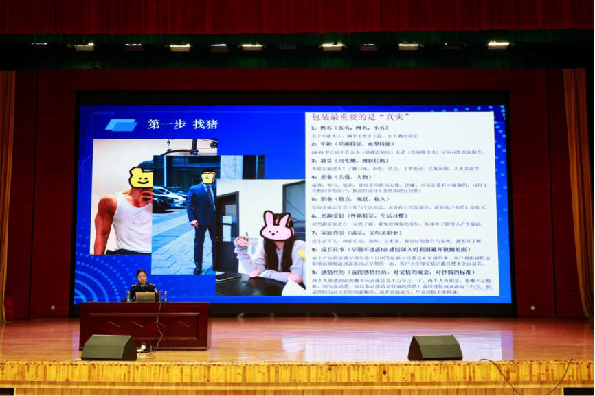 孔警官结合多年基层反诈实战经验与近期高校真实案例,采用“案例拆解+技巧科普”的立体化授课方式,系统梳理了当前高校中高发的诈骗类型。从“刷单返利”“虚假购物”等传统骗局,到“冒充客服注销贷款”“网络交友诱导投资”等新型复合型诈骗手法,孔警官逐层剖析诈骗的话术设计、心理操控步骤与资金转移路径,生动还原诈骗实施全过程。讲座中,她特别聚焦大学生常用社交、购物、支付平台、找兼职、购买培训课、裸聊等,针对性讲解网络账户安全设置、个人信息防护要点,纠正“小额转账无风险”“熟人推荐必可信”等常见认知误区,并明确“不轻信、不转账、速核实、快报警”的应急处理流程,指导学生掌握证据固定方法与报案流程。